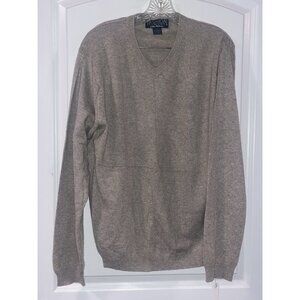 Men’s Medium 100% Cashmere V-Neck Sweater Beige Fashion Elements MED