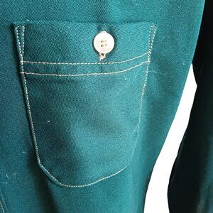 Men's Medium 16 Vintage Shirt 1970's Green Stretch Polyester Shirt Disco Collar