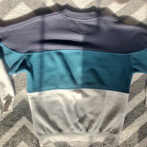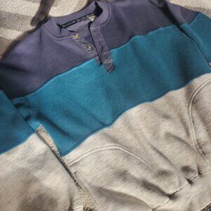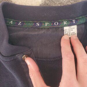 Men's medium vintage AZ Sports button up sweatshirt - navy, teal, and gray colors - retro sporty look and it's super cozy.