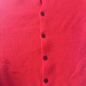 Red Button Cardigan Sweater Mens Medium Black Stripe Cuffs Knit Casual Classic