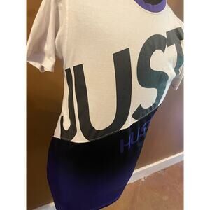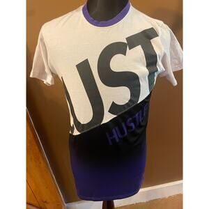 Men's Medium JUST HUSTLE Shirt Colorblock GUC Purple White Black