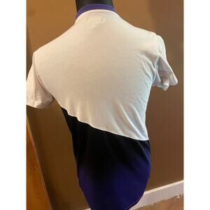 Men's Medium JUST HUSTLE Shirt Colorblock GUC Purple White Black. Subtle, light stain noted in last photo