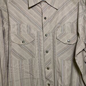 Men's Medium Maxini Tan & Brown Long Sleeve Button Down Shirt