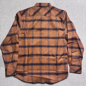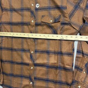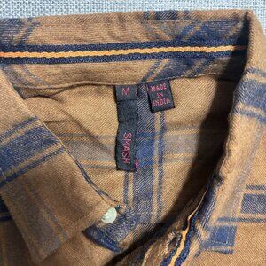 Mens Medium Plaid Button-Up Shirt Brown & Blue 55% Cotton 45% Polyester