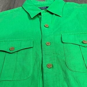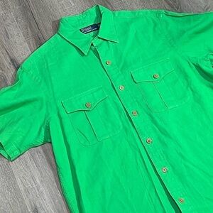 Mens Medium Polo Ralph Lauren Linen Cotton Light Green Shirt Sleeve Safari Shirt