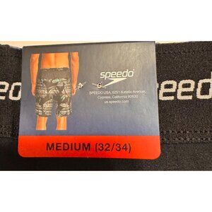 Mens Medium Speedo Tropical Black Floral Swim Board Shorts Surf Tech Volley