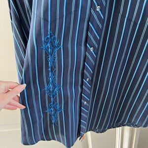Dust off your cowboy boots and add this beautiful western shirt to your closet! Perfect for anyone who lives in rural allocations, or owns a farm. Great for country music events like Stagecoach, or any other events you want to get dressed up for!