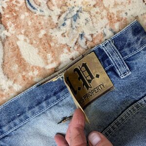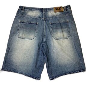 Mens Members Property Y2K Baggy Grunge Jean Shorts Hip Hop Scarface Patch Wide
