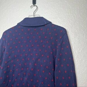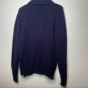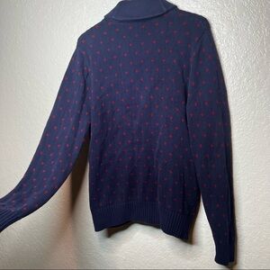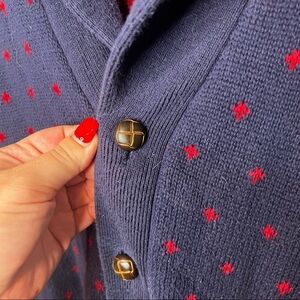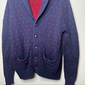 The sweater is in really good condition there is a tiny bit of pilling but besides that it’s fine it’s a great size great color and has a nice design on the cardigan