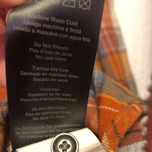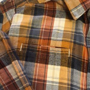 Men’s Merrell cotton plaid button down shirt. Two open pockets on front. Size XL.