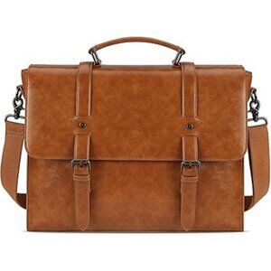 Mens Messenger Bag Vintage 15.6 Inch Waterproof Leather Laptop Briefcase Satchel