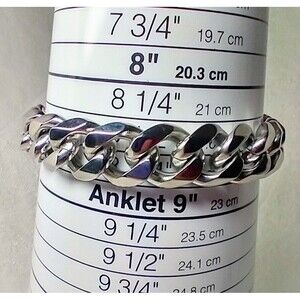 Add a touch of edgy style to your jewelry collection with this Men's Miami Cuban 15 mm Link Stainless Steel Bracelet. The bracelet features a high-polish finish and a lobster closure for a secure fit. It is approximately 9" in length and made of nickel-free stainless steel, making it stackable and durable. The bracelet is perfect for any occasion, whether it's a Christmas gift, an anniversary gift, or a birthday gift. The chain type is Cuban Link, and the bracelet has a biker theme. The item is not handmade, and it is not vintage. The main stone is no stone, and the secondary stone is no stone. The bracelet is not antique, and it was manufactured in China.