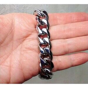 Men's Miami Cuban Curb 15 mm Link Steel Bracelet Sz 8.75 *Biker* High Polish