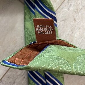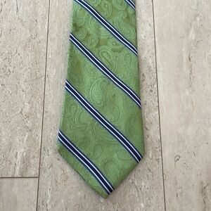 Men's Michael Kors 100% Silk Paisley Asymmetrical Striped Suit Tie Green Blue