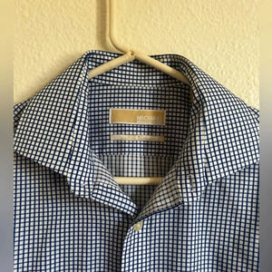 Mens Michael Kors Blue Plaid Long Sleeve Button Up Non-iron Shirt 15.5 32/33