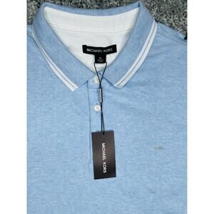 Crafted from light wash cotton, this shirt is machine washable for easy care and maintenance. Whether you're dressing up for work or going for a casual look on the weekend, this polo shirt is perfect for any season - from summer to fall to spring. Measures about 24" pit to pit and 30" length. Get ready to impress with this stylish and versatile polo shirt from Michael Kors.