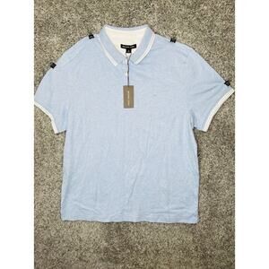 Mens Michael Kors Greenwich Heathered Button Polo Shirt Blue Size XL Collared