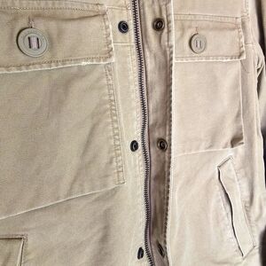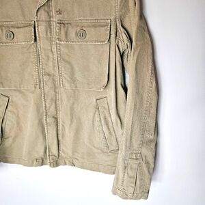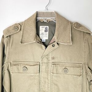 Men's Military Zip Up Button Jacket Distressed Size Small Khaki Tactical Chore