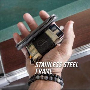 Mens Minimalist Stainless Steel,Elastic Wallet, Slim,Lightweight,Bottle Opener