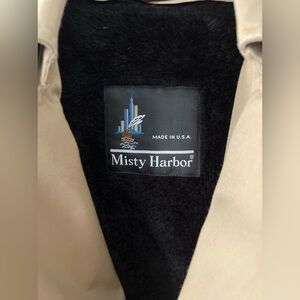 Men’s Misty Harbor Size 44 Long Beige Faux Fur Lined Rain Coat. Preowned item with a few marks. Please look at all pictures carefully.