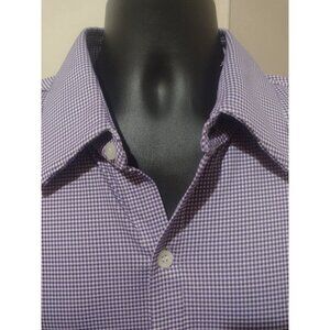 Men's Mizzen+Main LS Purple White Check Dress Button Shirt Size 2XL Trim Fit