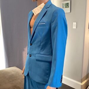 Men’s Mogu Blue 2 Piece Suit Single Breasted 2-Button Jacket 36 Pants 32 NWT