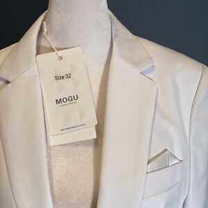 Men’s Mogu White 2 Piece Slim Fit Suit Notched Lapel Size 32 Jacket 31 Pants NWT