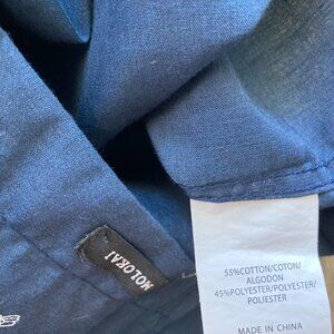 -Navy blue button-down, short sleeve