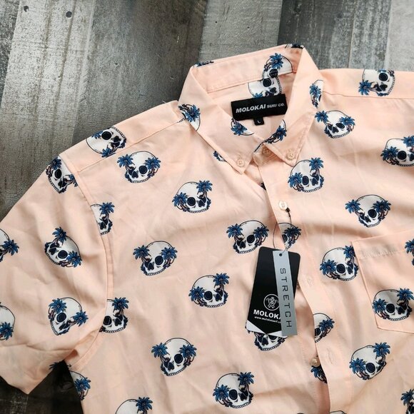 Mens Molokai Surf size L Large Short Sleeve Shirt Palm Trees Skulls