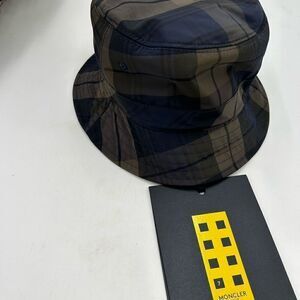 Men’s Moncler genius fragment printed check, nylon bucket, hat, size medium