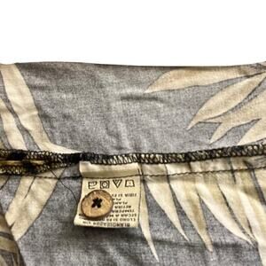 Features palm fronds and imitation coconut shell buttons. Made in China