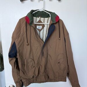 Stylish men's jacket featuring a blend of brown, green, and red. Perfect for versatile wear.