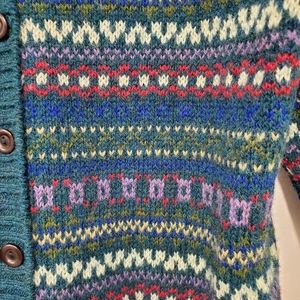 Stay warm and stylish with this multicolor patterned cardigan. Perfect for layering, this sweater adds a pop of color to any outfit.