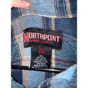 Men's multicolored blue button down flannel from NorthPoint Athletic Apparel. Size 2XL. Exact measurements below.