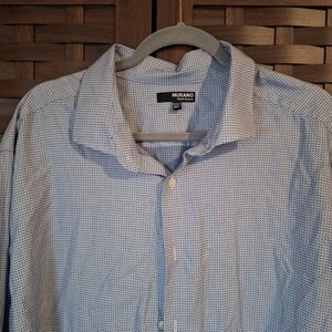 Mens Long Sleeve blue and white Button Up Shirt from Murano. Liquid Luxury. 100 % Cotton