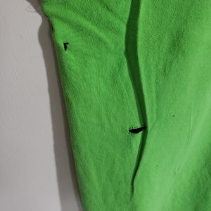 Two small tares (pictured) than can easily be stitched. Otherwise, the shirt is in very good shape.