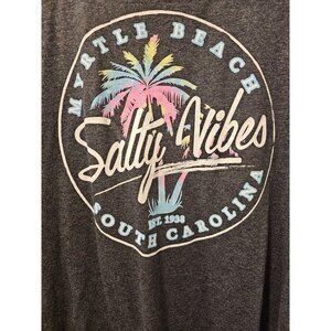 Men's Myrtle Beach Salty Vibes T Shirt SIZE M GREY W/NEON PINK BLUE PRINT