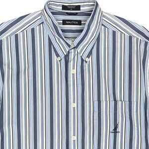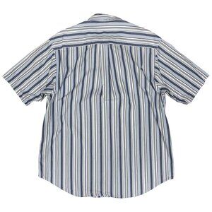 Men’s NAUTICA Striped Short Sleeve Cotton Button Dress Shirt Blue | Size Large