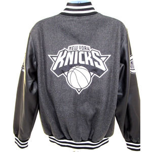 Men's NBA Varsity Jacket NEW YORK KNICKS GIII by Carl Banks Gray Black Large NEW