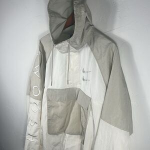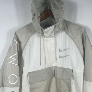 🔥 Men's NIKE ANORAK Double SWOOSH Nylon Mesh Lined Pullover Jacket Autumn White