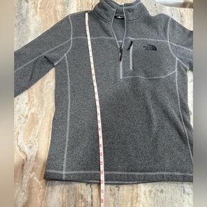 Men’s North Face Gordon’s Lyons 1/4 zip Grey pullover long sleeve sweater- Size small. Great condition. Left chest logo with zipper pocket. See all photos, including measurements. Smoke free home, fast shipping!