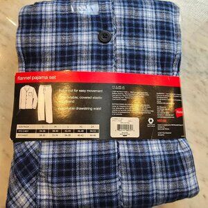 New PJ set cozy flannel 100% cotton, elastic waistband with adjustable drawstring, top is button down.
