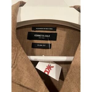 Mens NWT Kenneth Cole Linen Blend Casual Button up Small Tan