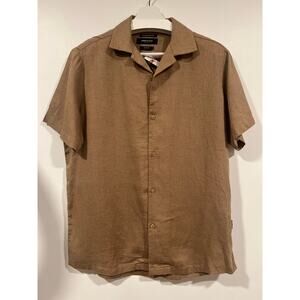 Mens NWT Kenneth Cole Linen Blend Casual Button up Small Tan