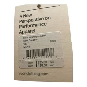 Men’s NWT Vuori Morrow Sherpa Jacket, size large