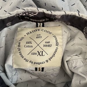 Men’s Native Code Blue Geometric Button Front Cotton Casual Shirt Long Sleeve XL