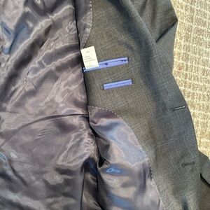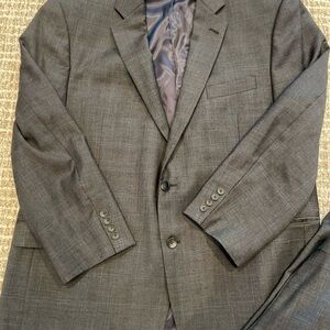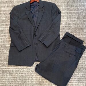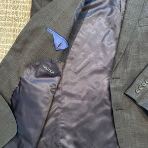 Men's Nautica 100% Wool Dark Gray Suit Blazer and Pants with Blue plaid stripes