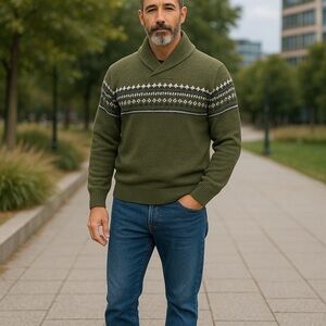 Men’s Nautica Cowl Neck Sweater Size Large Green Cotton