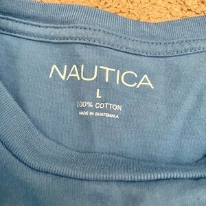 Men’s Nautica brand tee size Large. Tee has a graphic on the front. In good used condition.