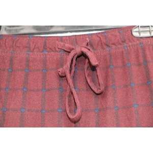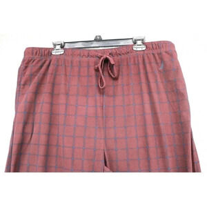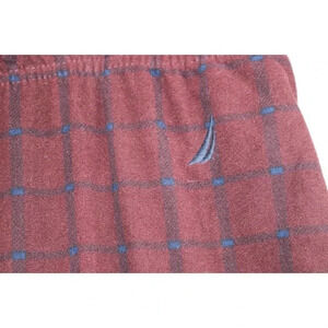 This is a Men's Nautica Pajama/Lounge Pants that are a size XL. They are burgundy with blue. They are very soft. 100% Polyester. They have pockets on each side and a drawstring. In good condition.